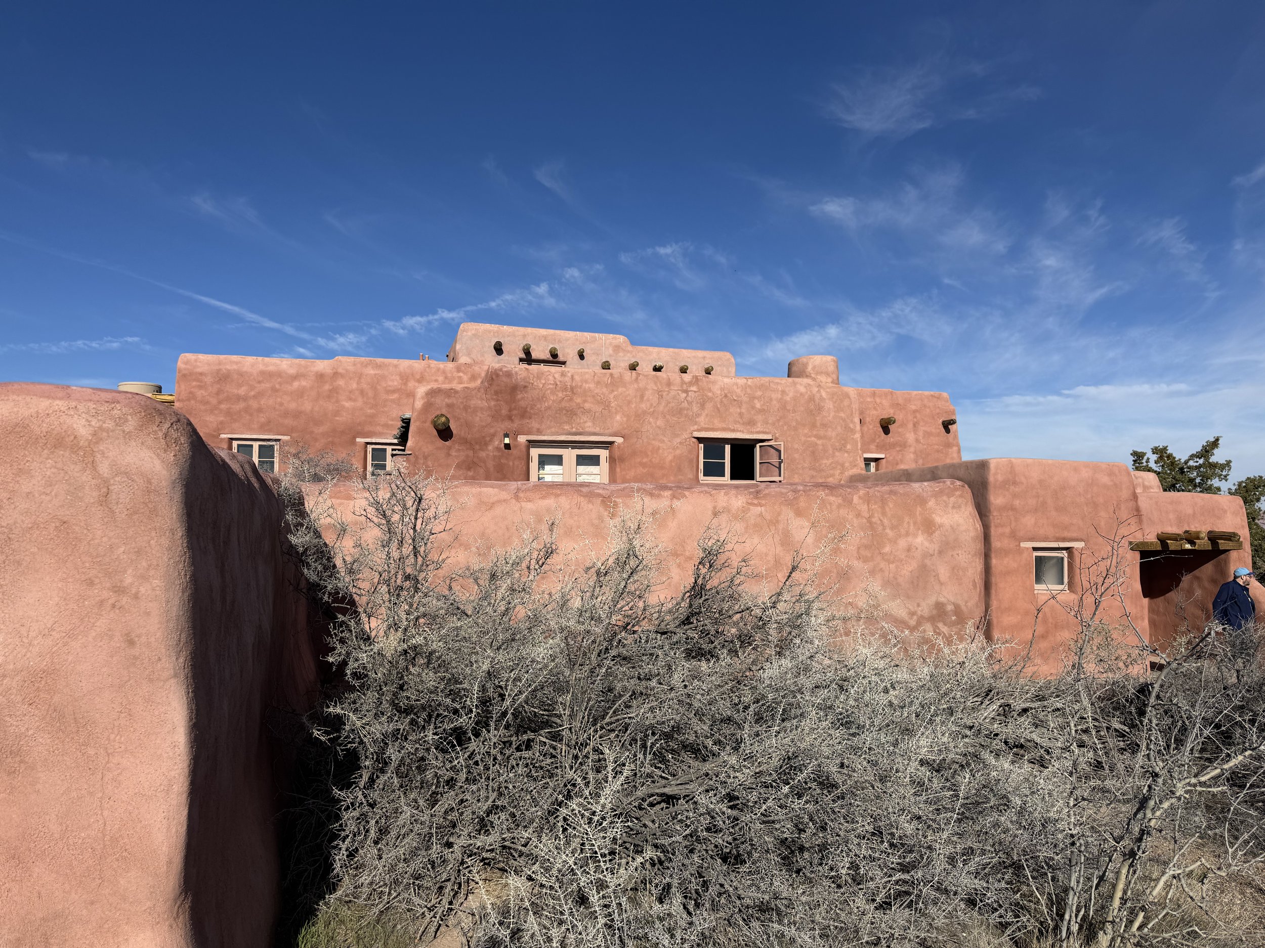 Petrified National Park is right off of I-40 (exit 311). When you take the exit, you are at the North/Painted Desert entrance. The Painted Desert Inn was originally built in the 1920 as an oasis of sorts for travelers. The clay shifted and the original structure began to show cracks. It was subsequently sold to the National Park Service. It was restored by the Civilian Conservation Corps and reopened in 1940 supplying travelers along Route 66. It continues to show cracks as the ground underneath shifts. It has also been modernized and is serving as a temporary visitor center while the normal visitor center is being renovated.